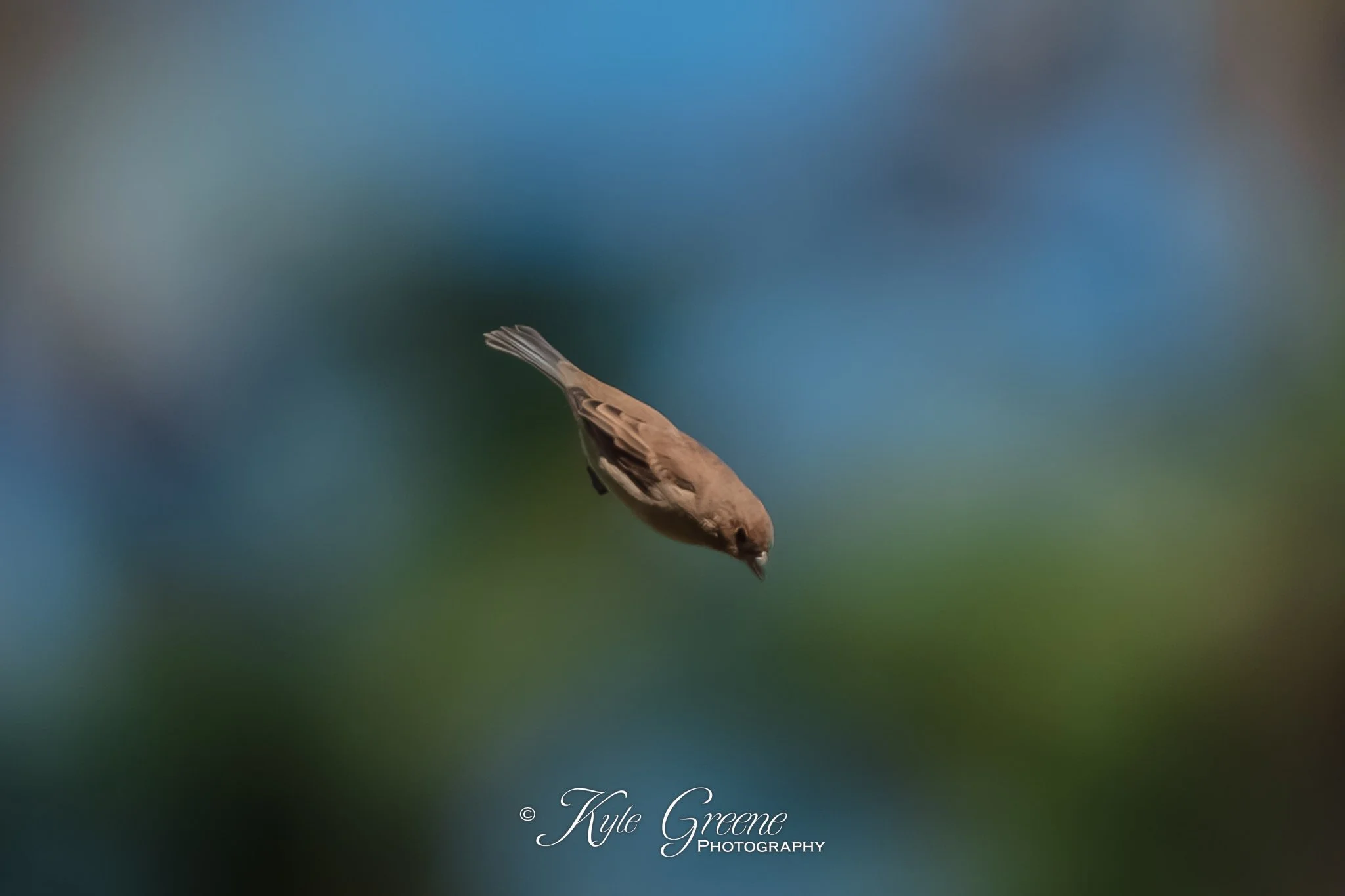 The Indigo Bunting does more of a “missile” dive with its wings tucked in as she headed towards the brush below.