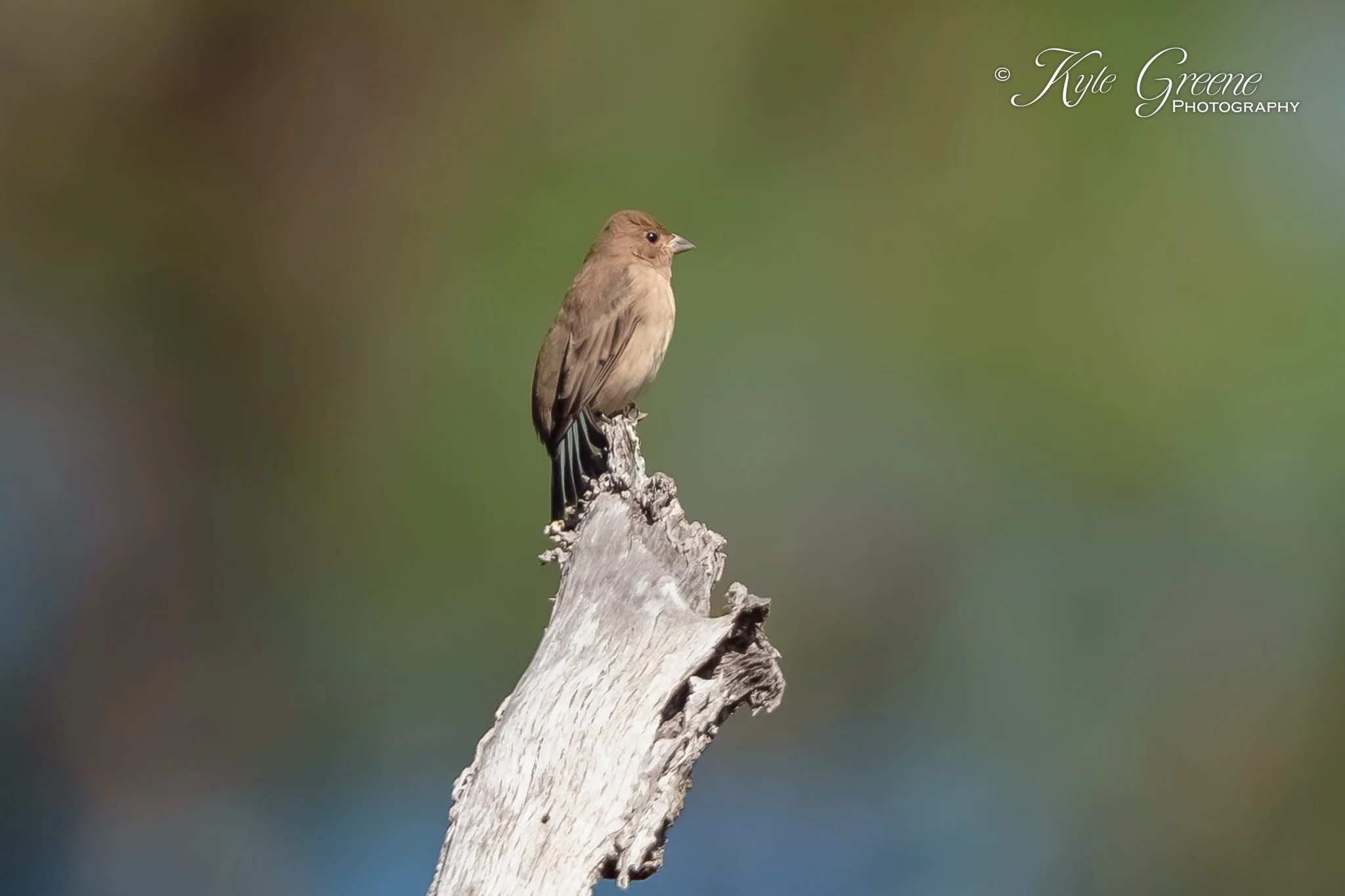 This female Indigo Bunting was harder to see than it looks in this photo. She’s not a big bird and blended in to the dead tree