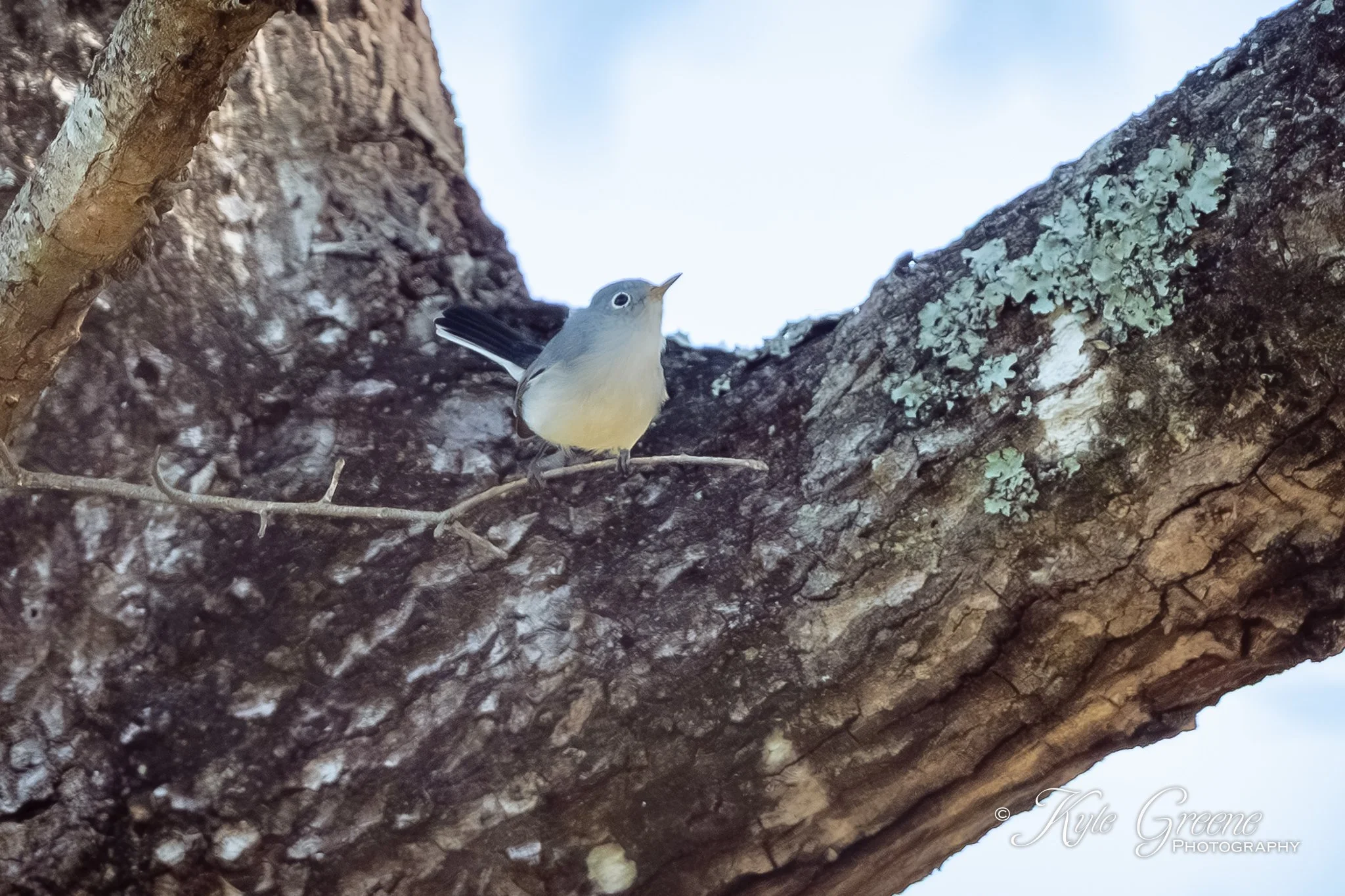 A tiny Blue Grey Gnat Catcher taking a break on a stick