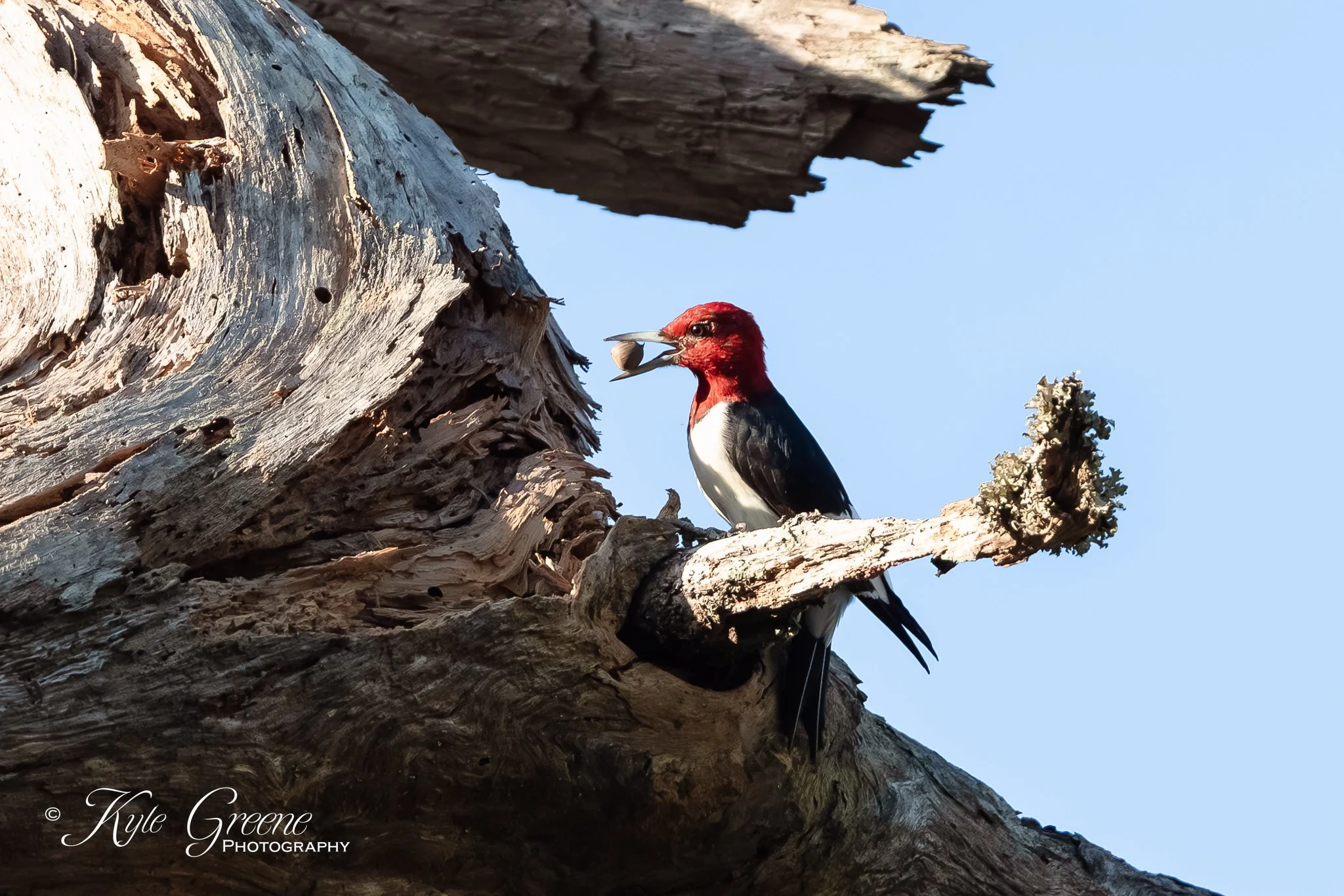 The Red-headed Woodpecker flew above us with its “breakfast bug”