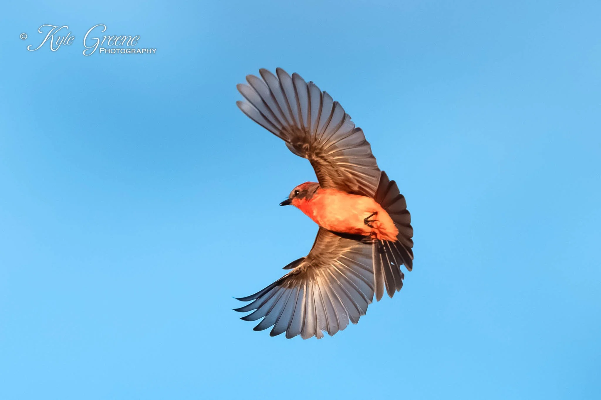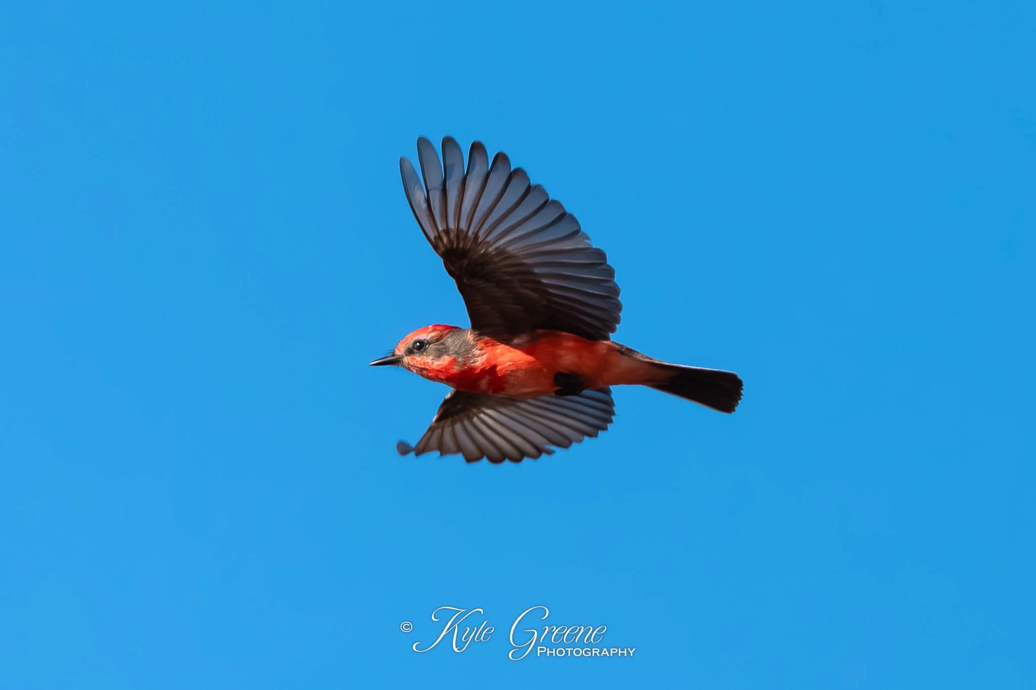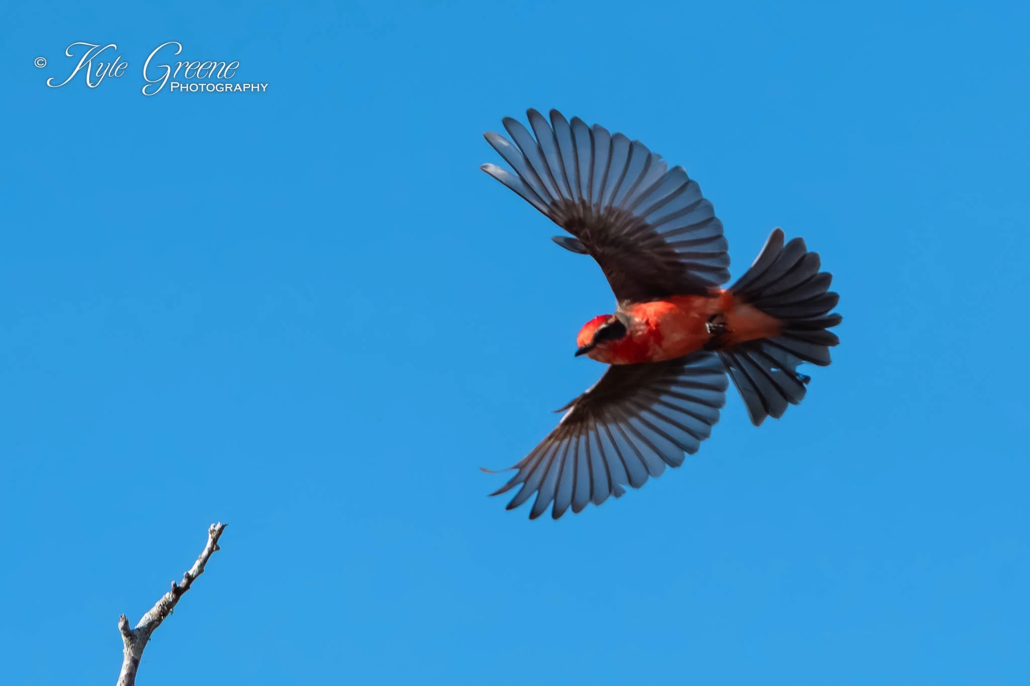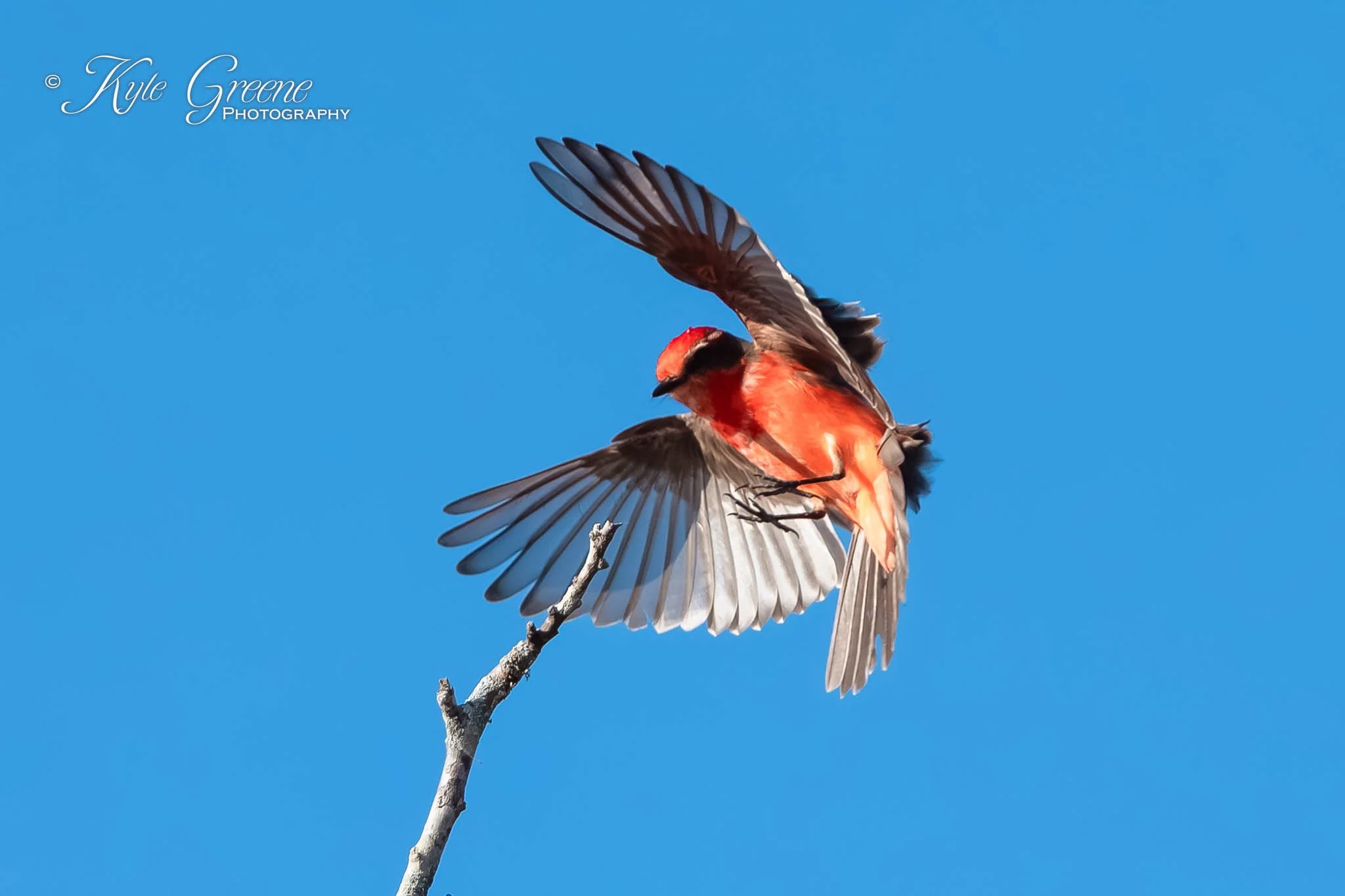 Landing gear out and hitting the brakes! Male Vermillion Flycatcher