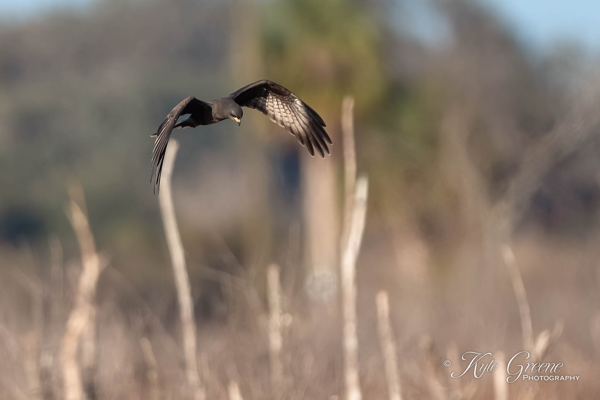 The male Snail Kite isn’t having much luck, but he keeps on looking