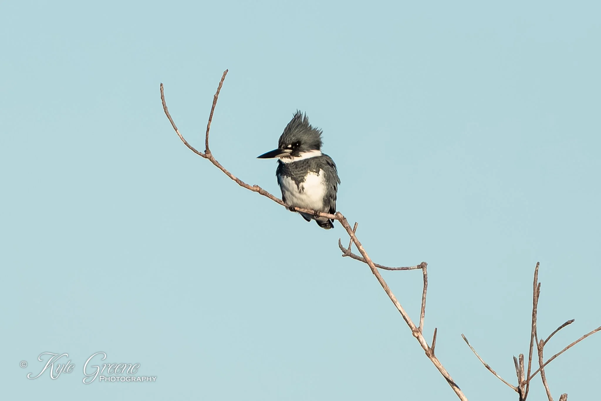 Belted Kingfisher was perched above the water waiting for breakfast to swim underneath