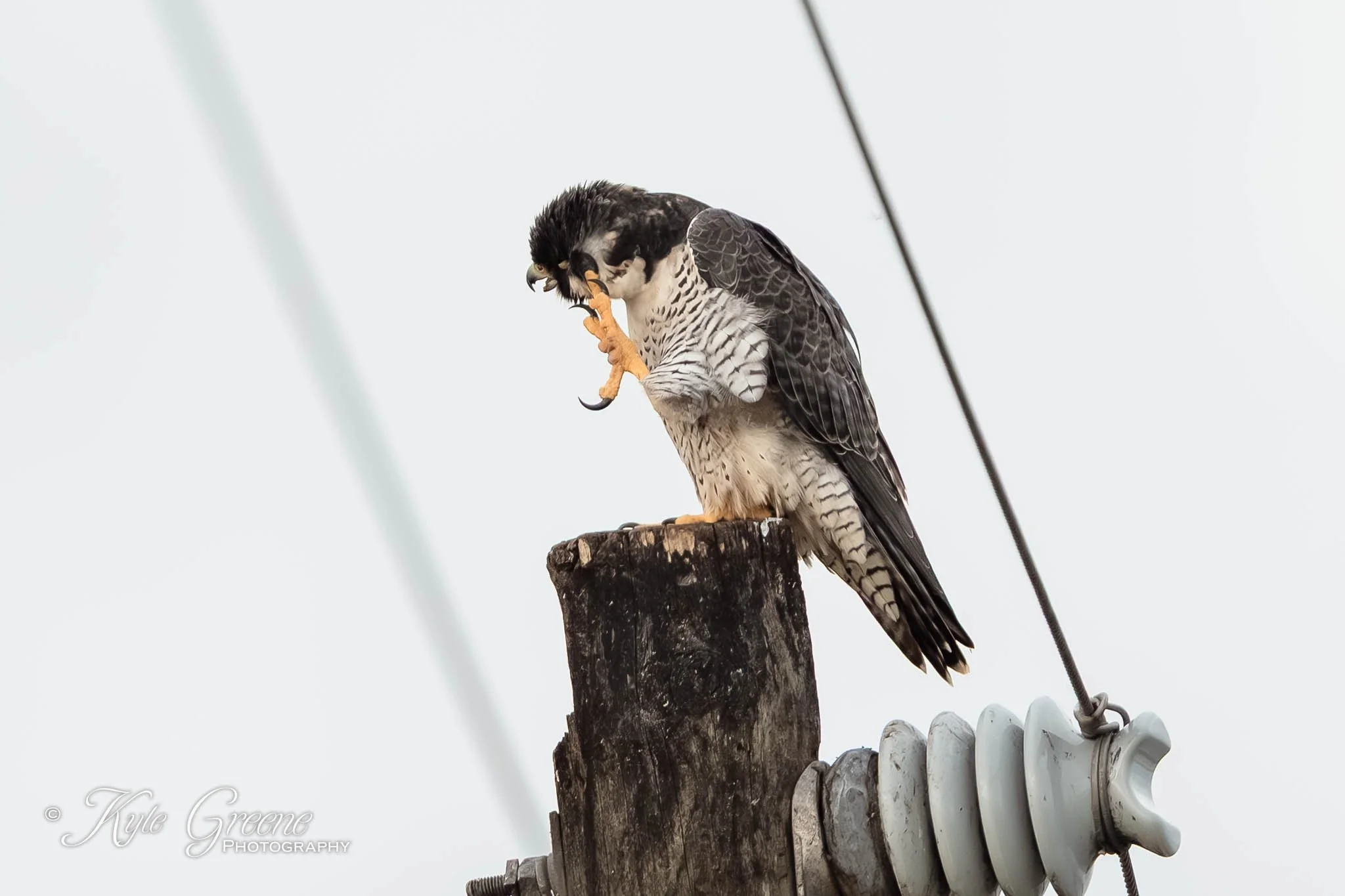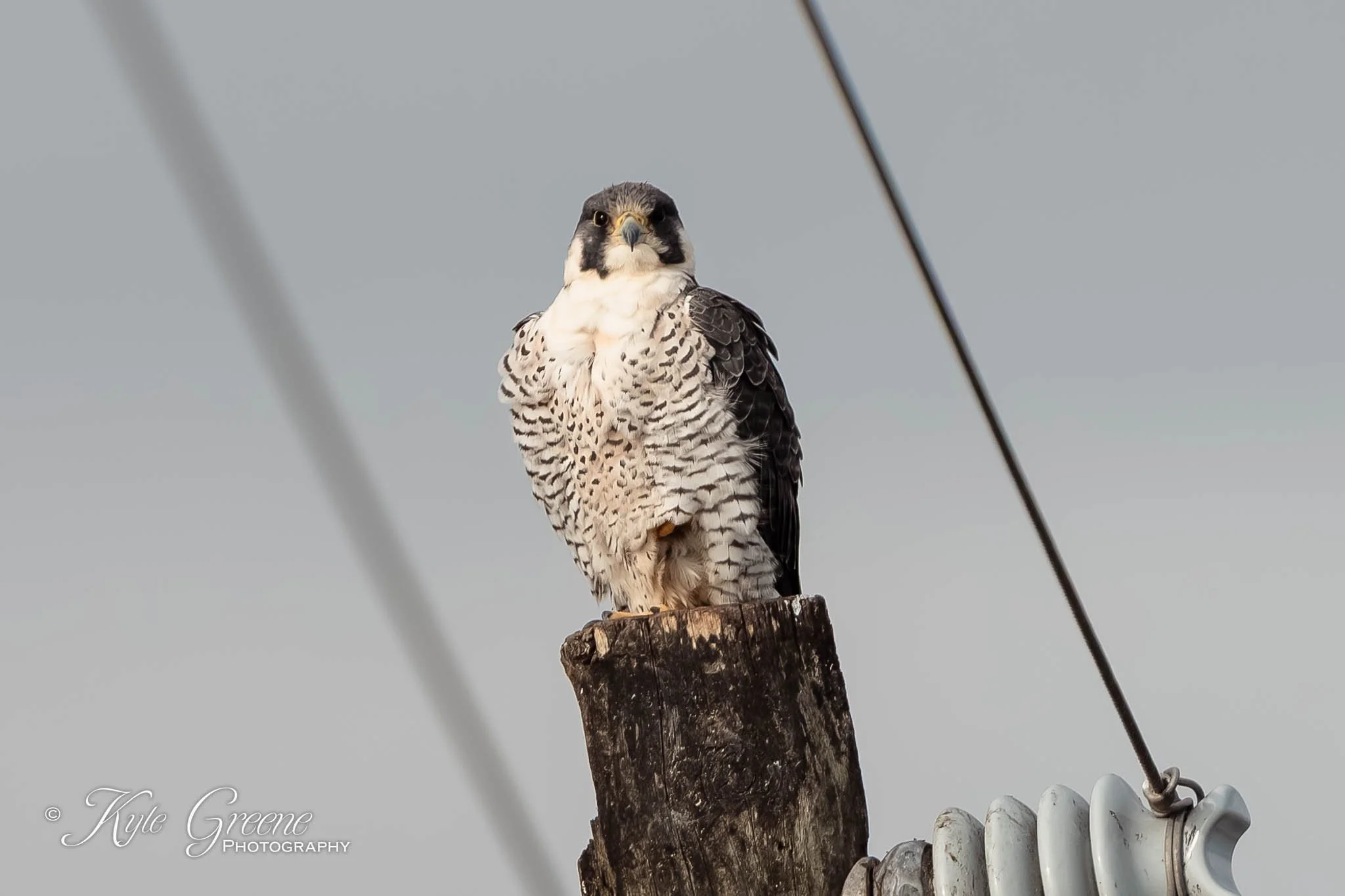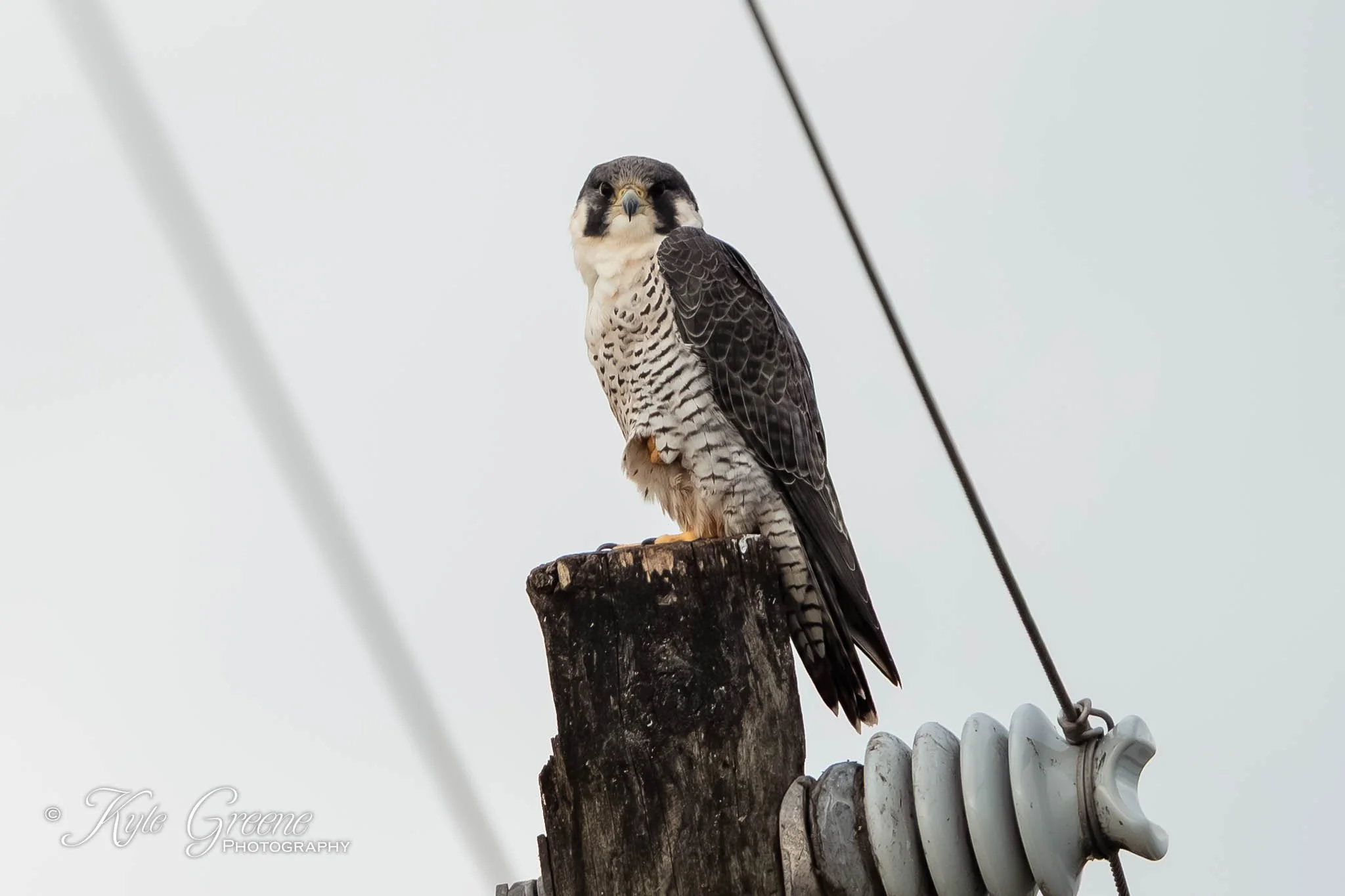 Peregrine Falcon resting on a power pole