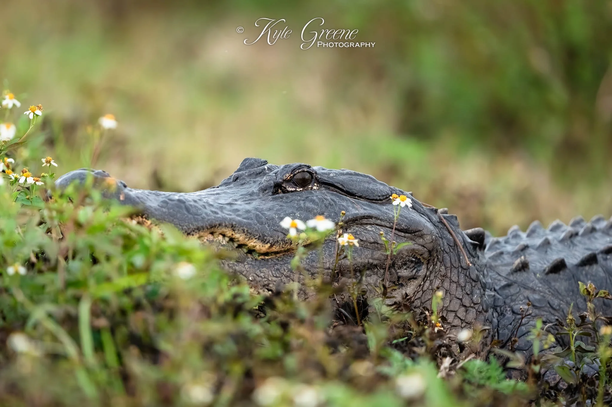 This 8 foot Alligator was winding behind the little flowers