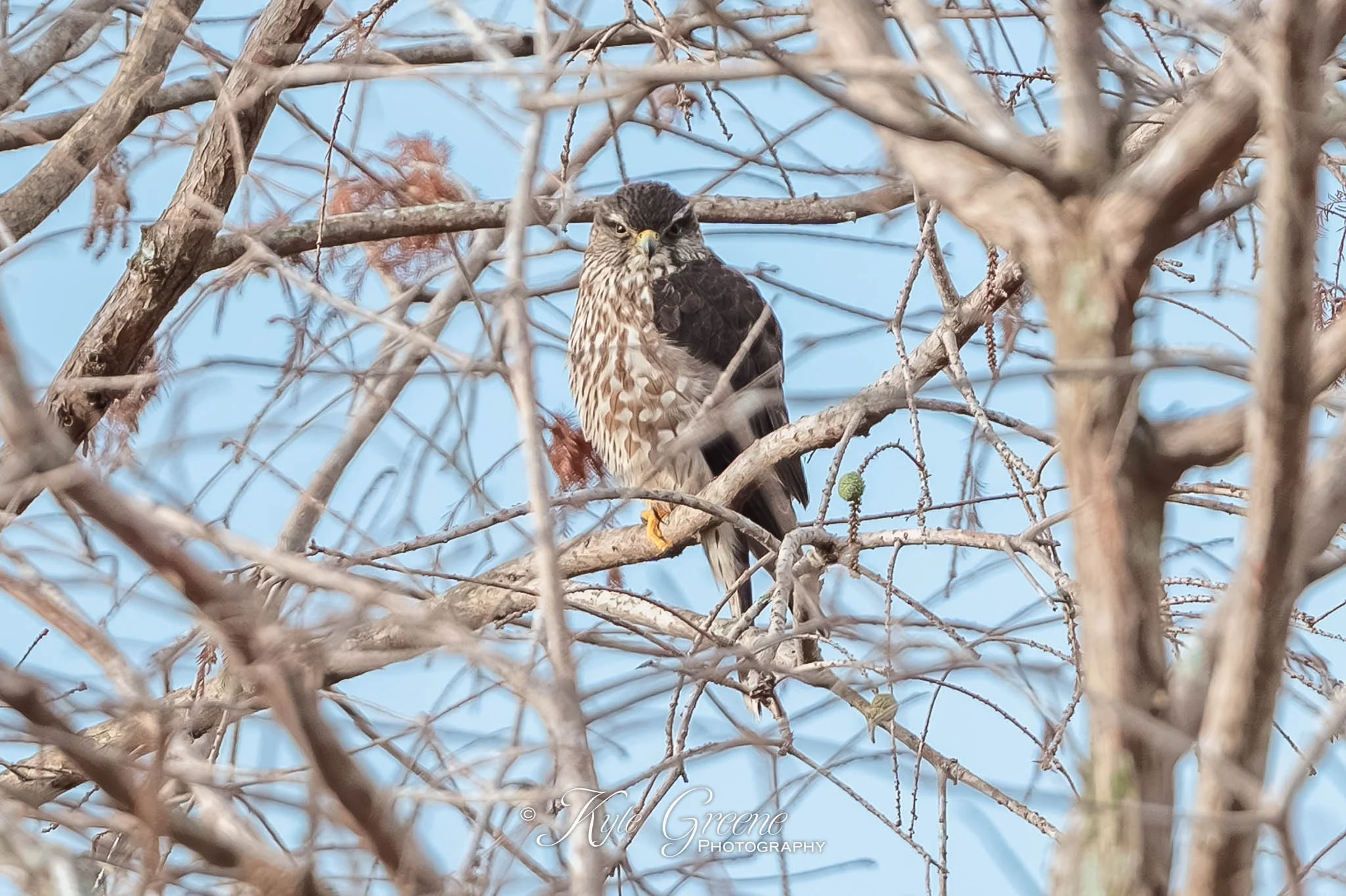 Merlin trying to hide from me. It needs to find some bigger branches!