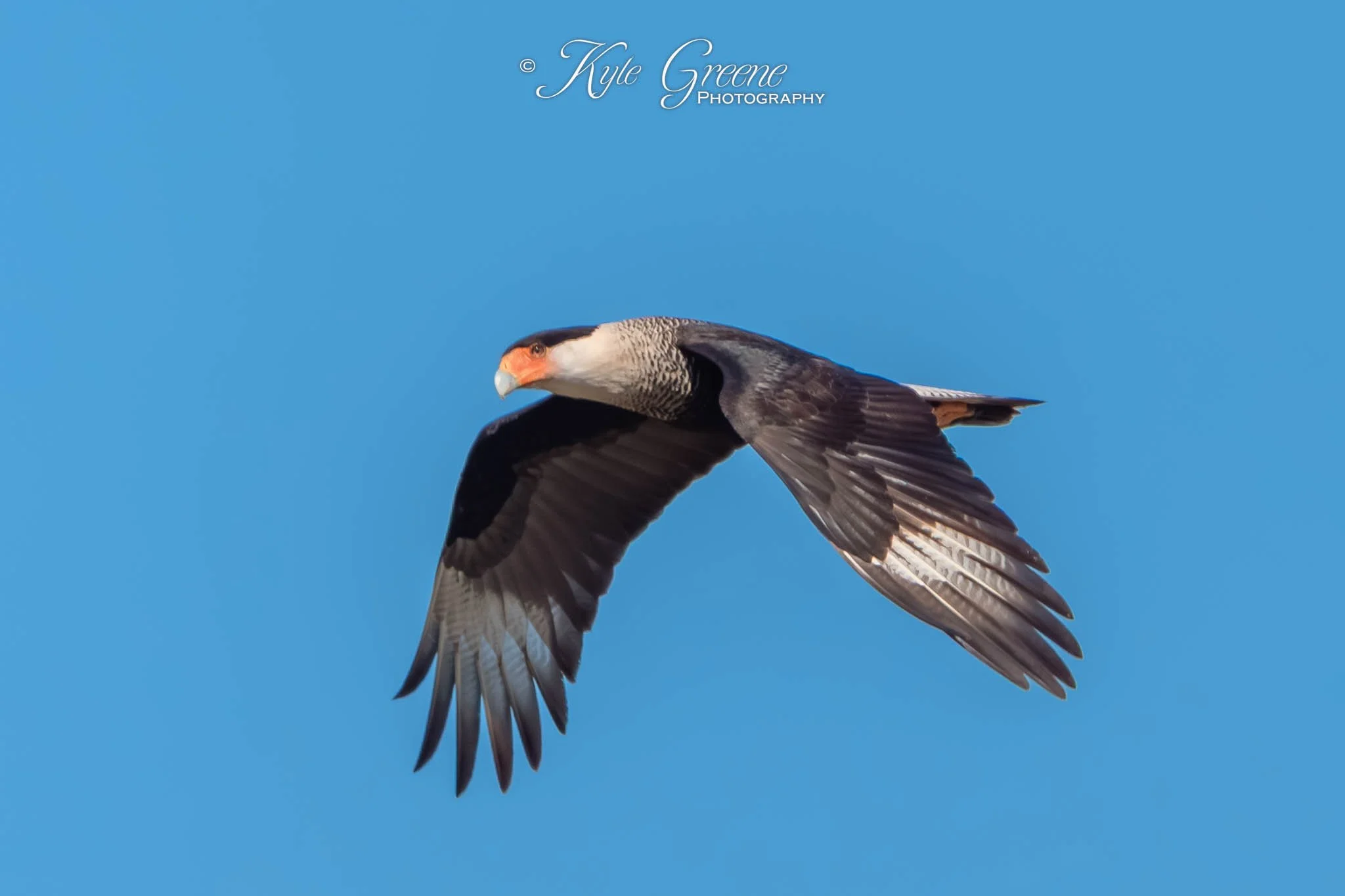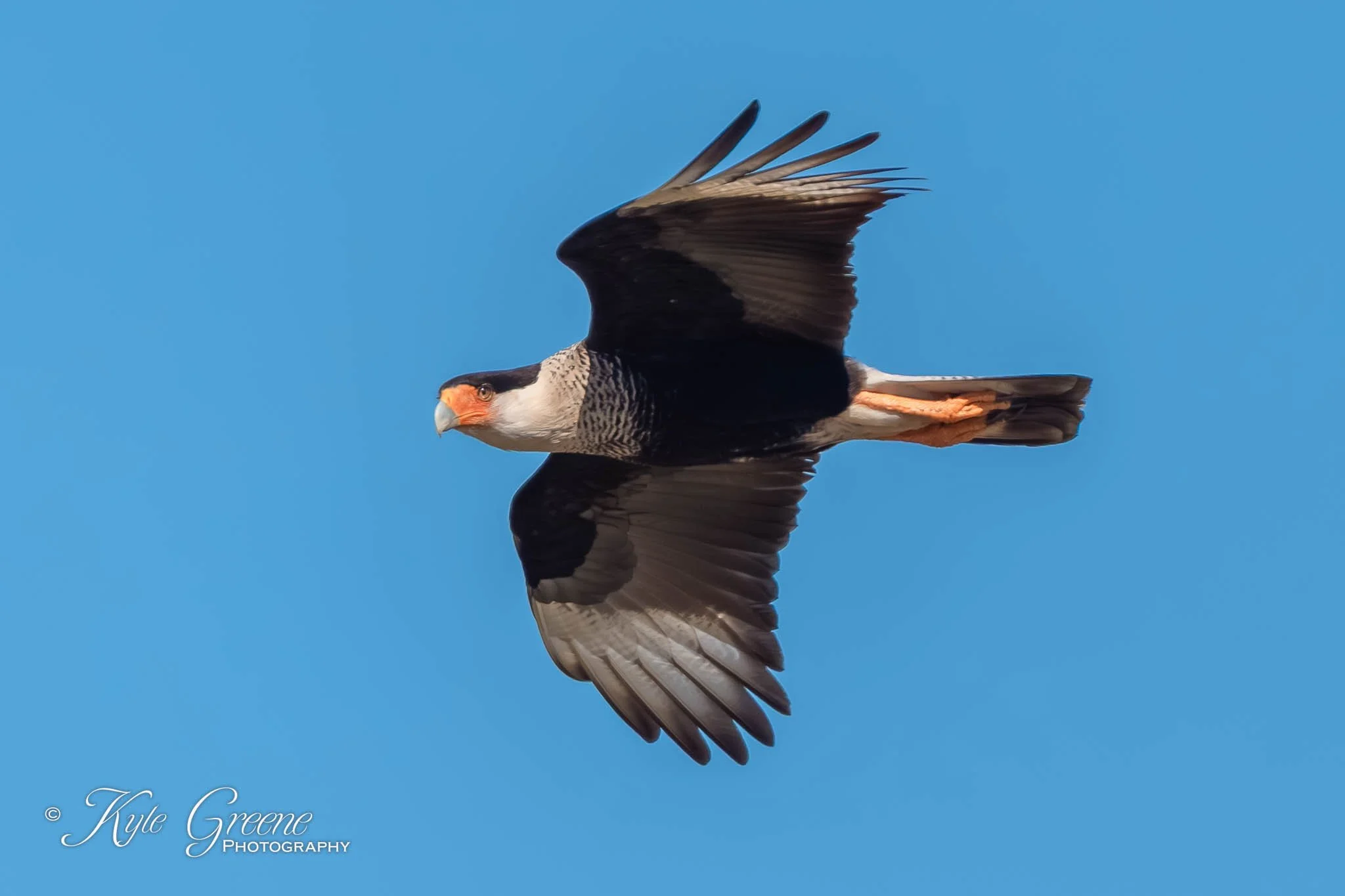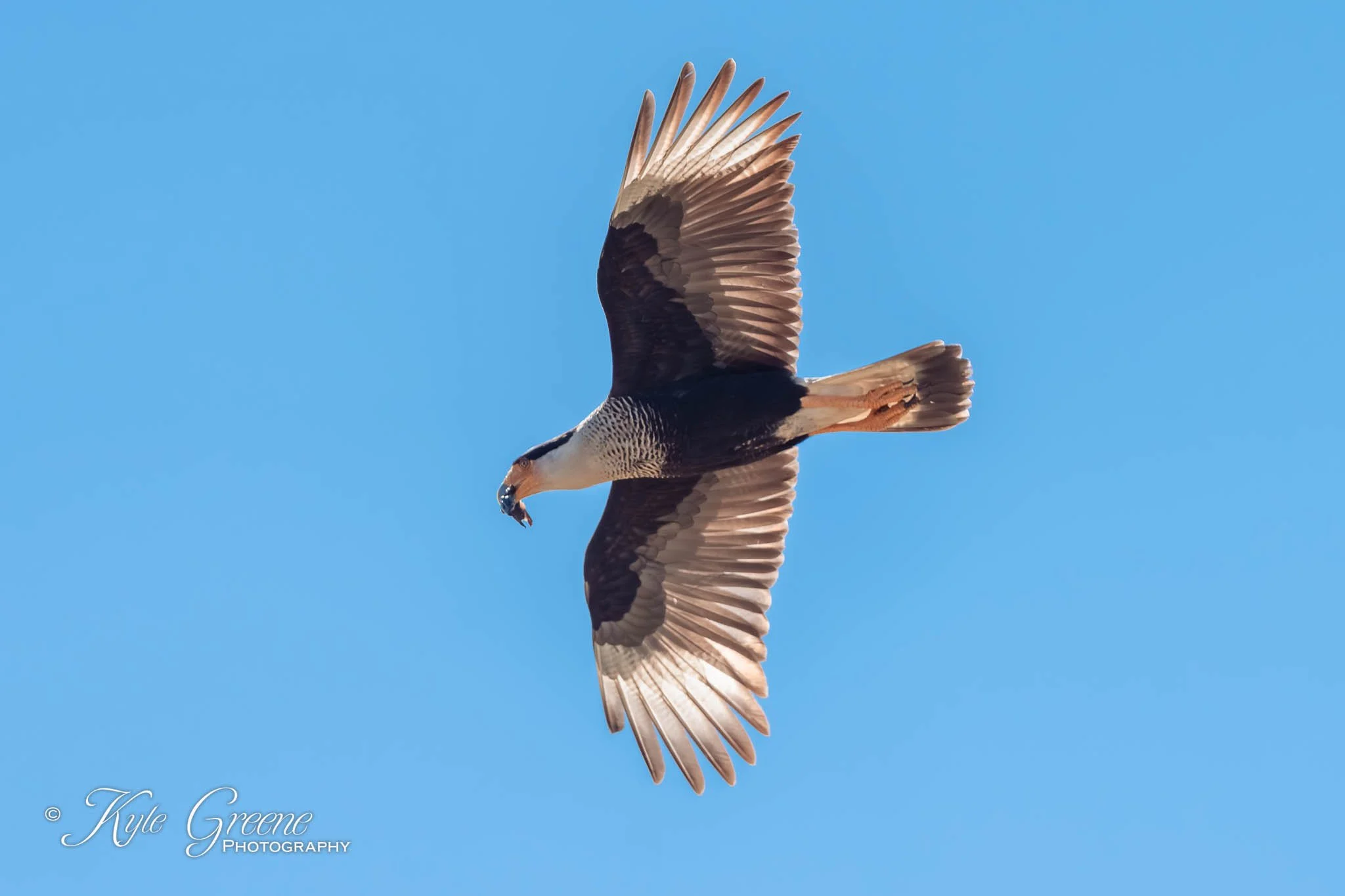 A Crested Cara Cara flew over the boardwalk with something to eat