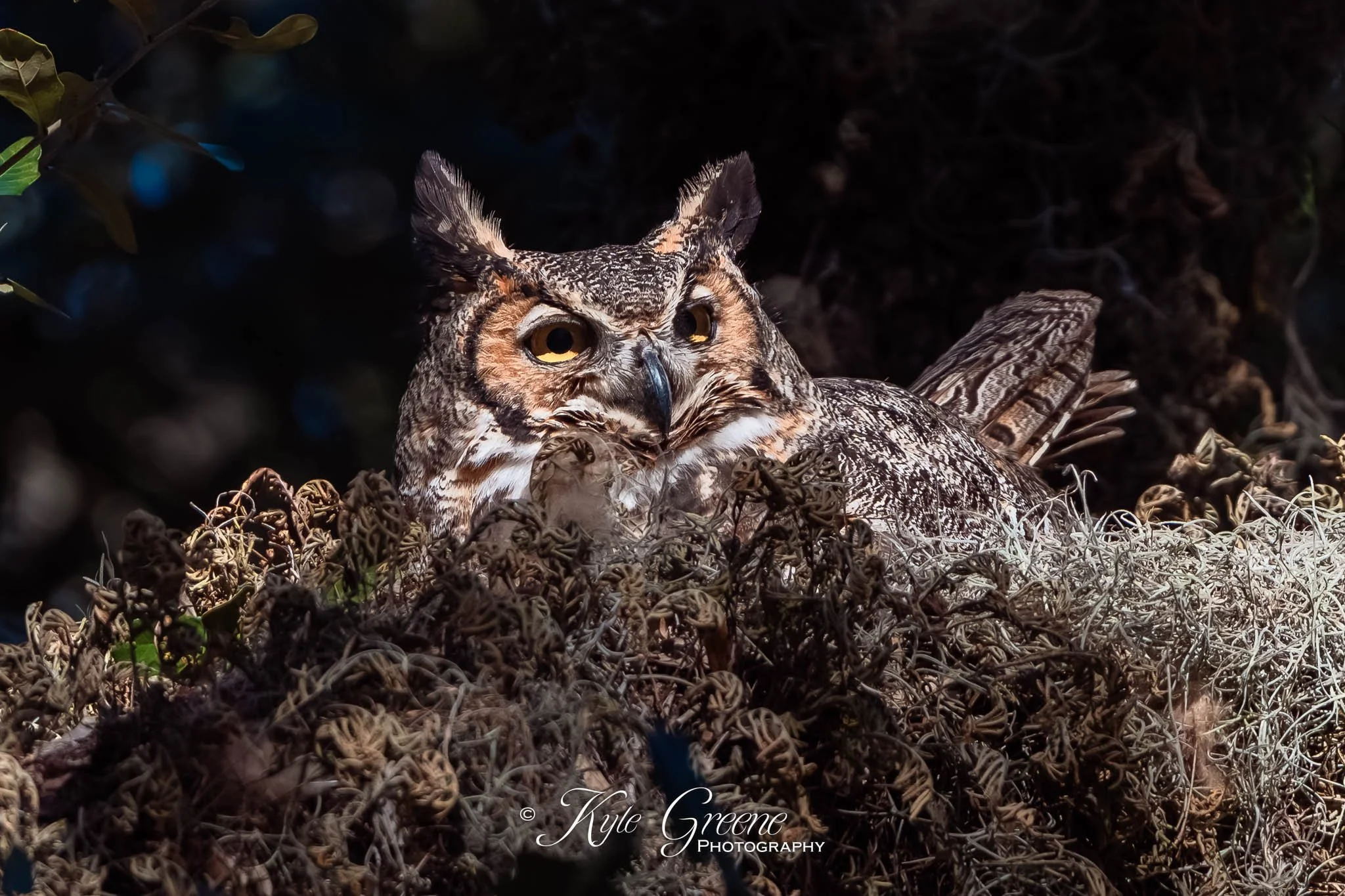 The Great Horned Owl finally opened her eyes enough to show off her yellow eyes