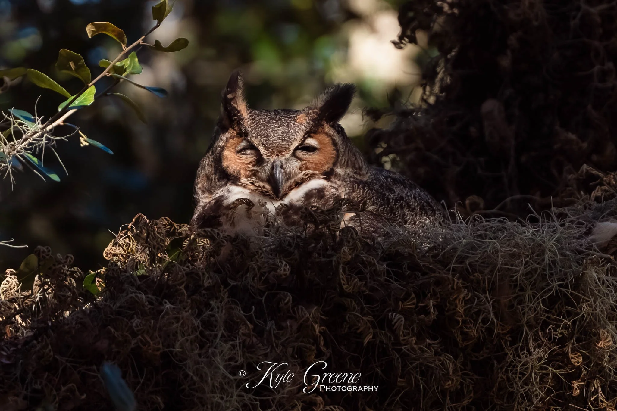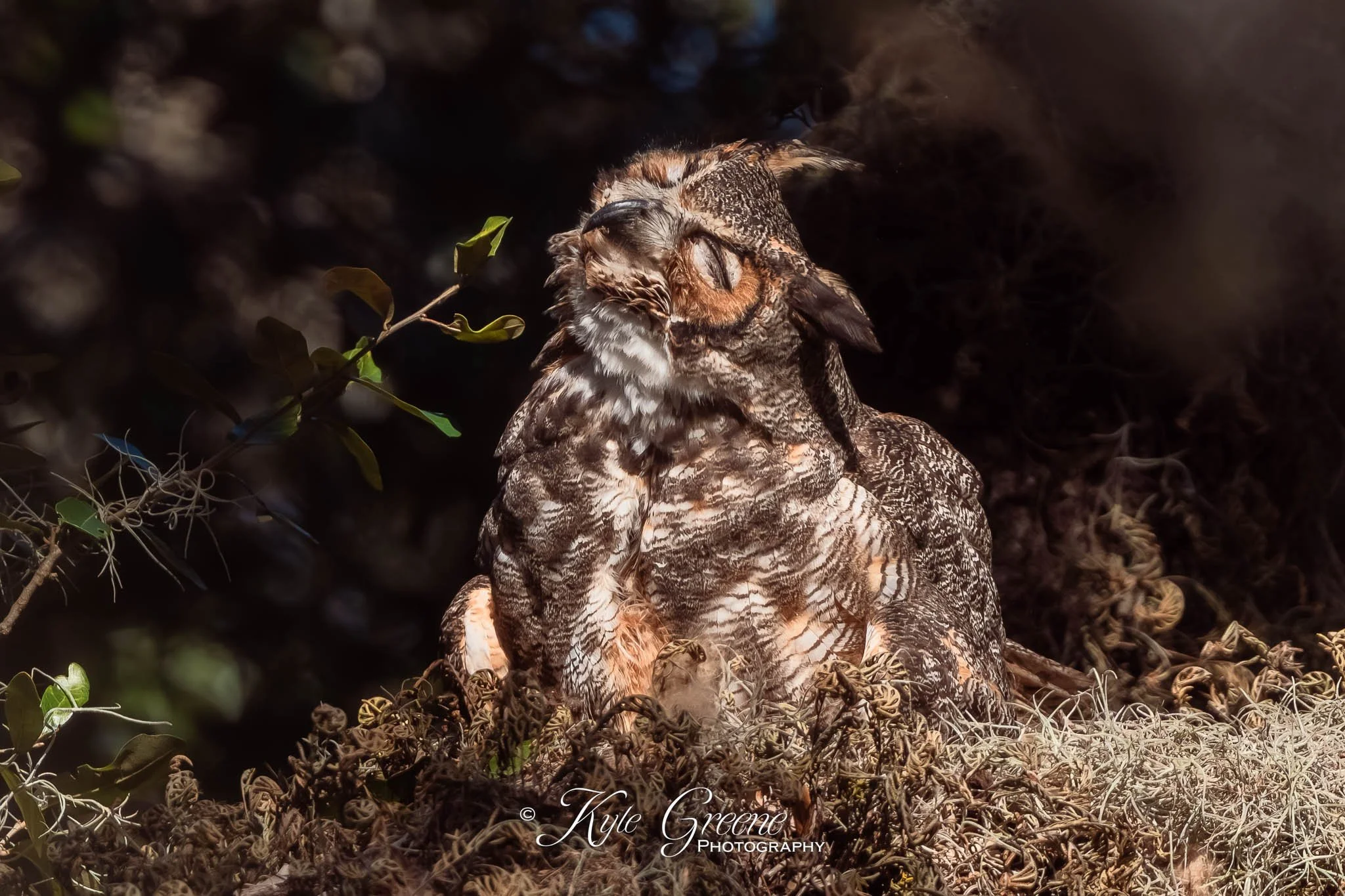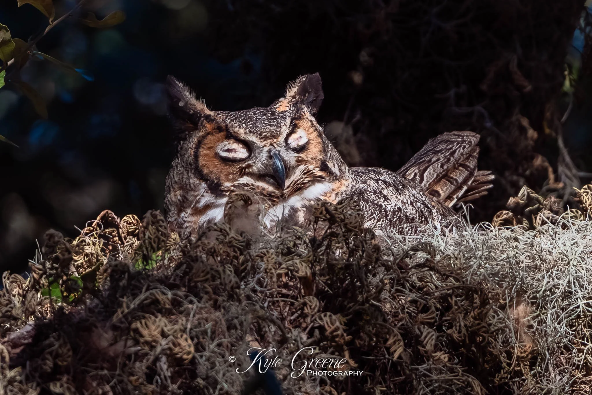 With her eyes closed, you can see the puffy eyelids on the Great Horned Owl