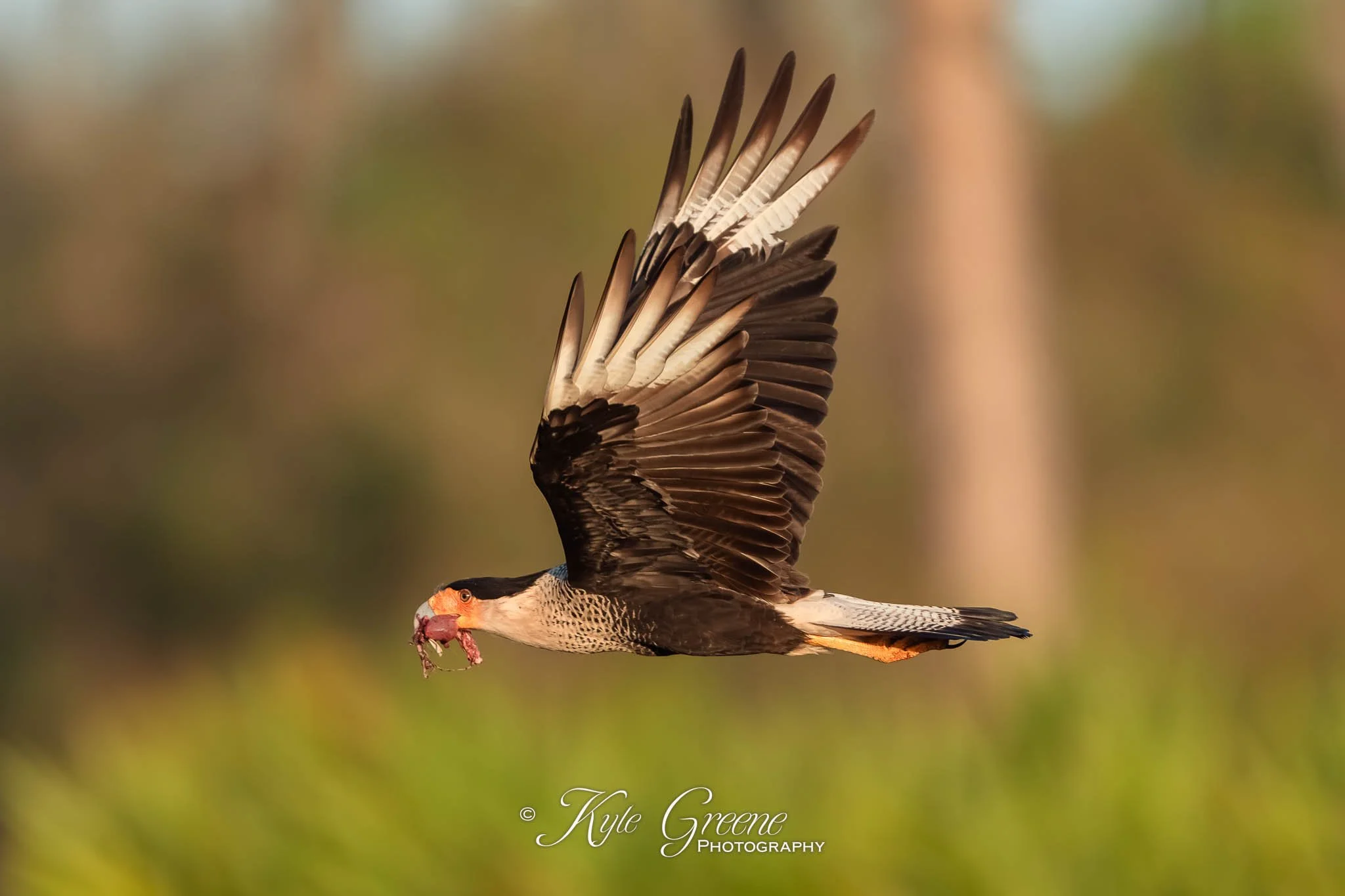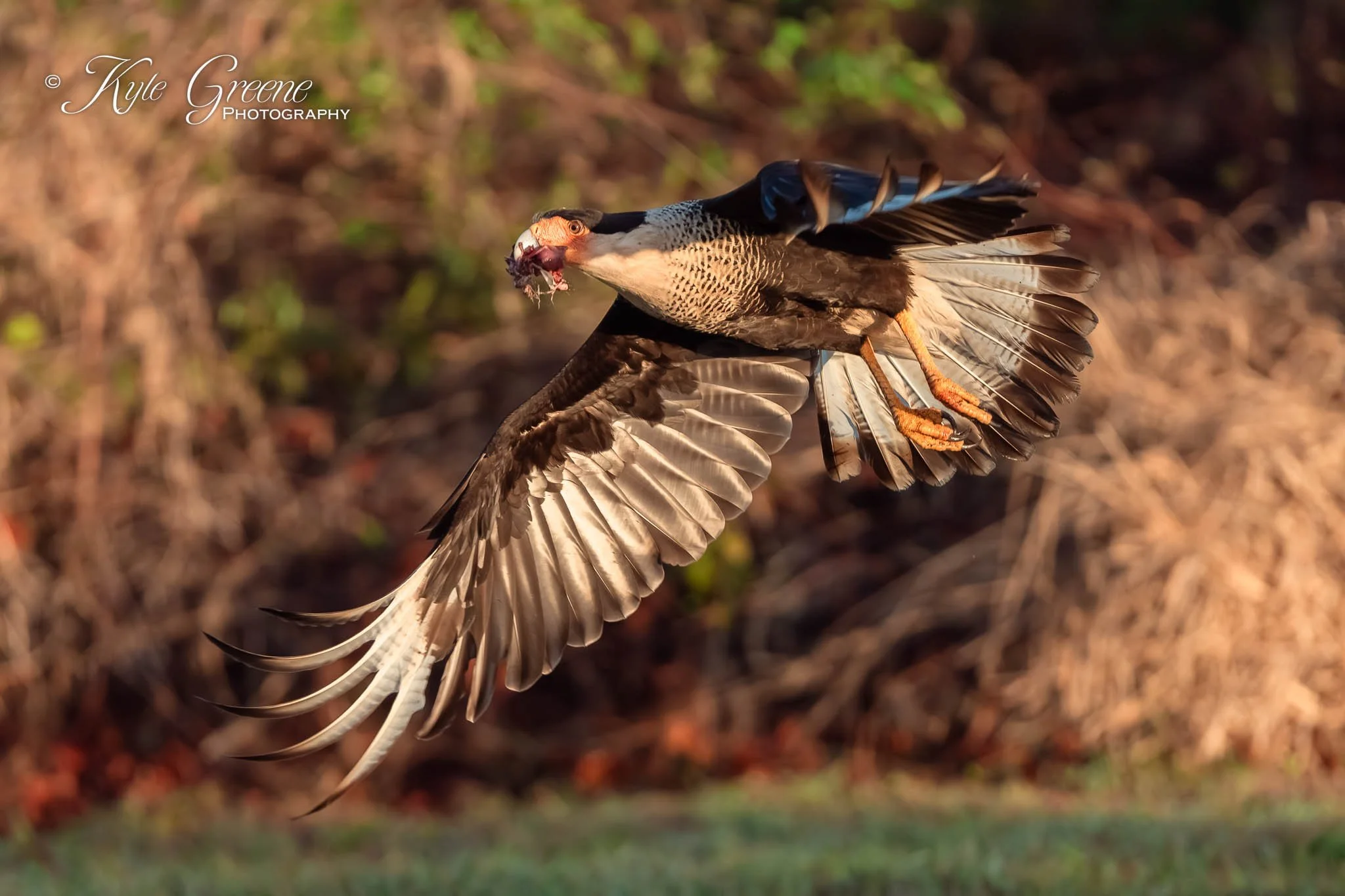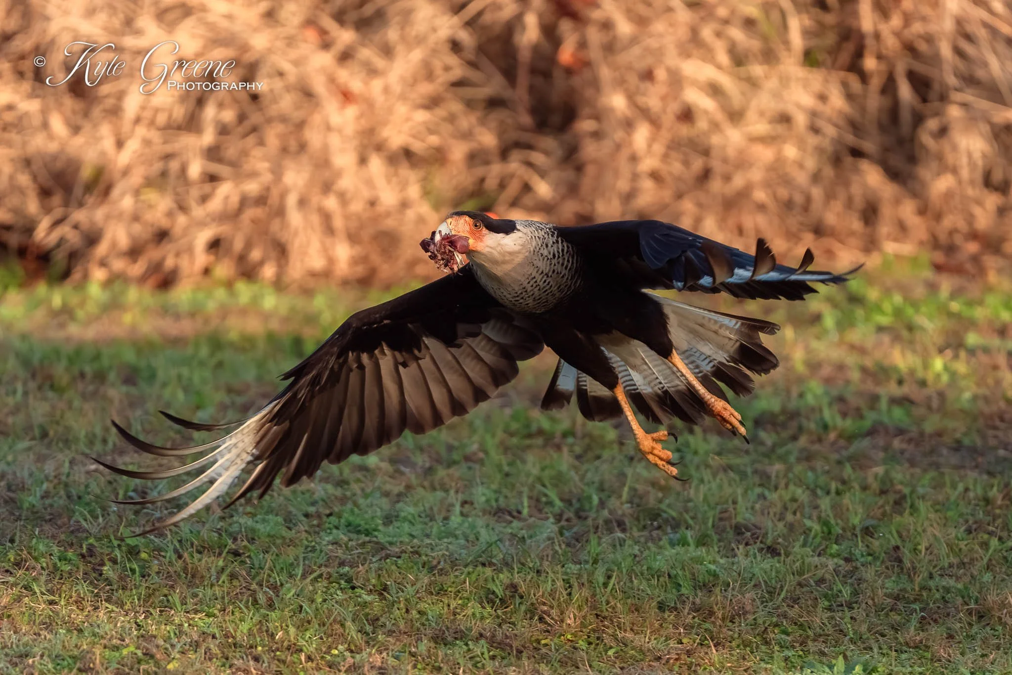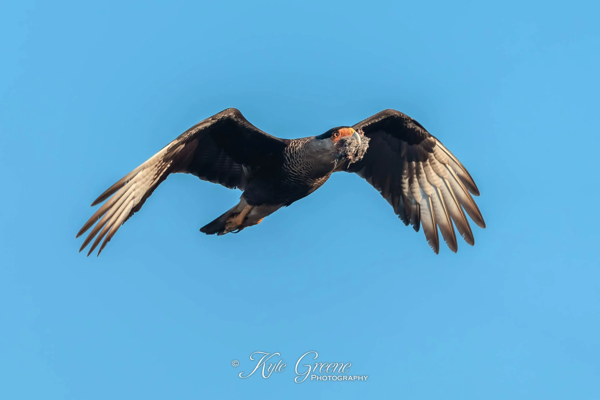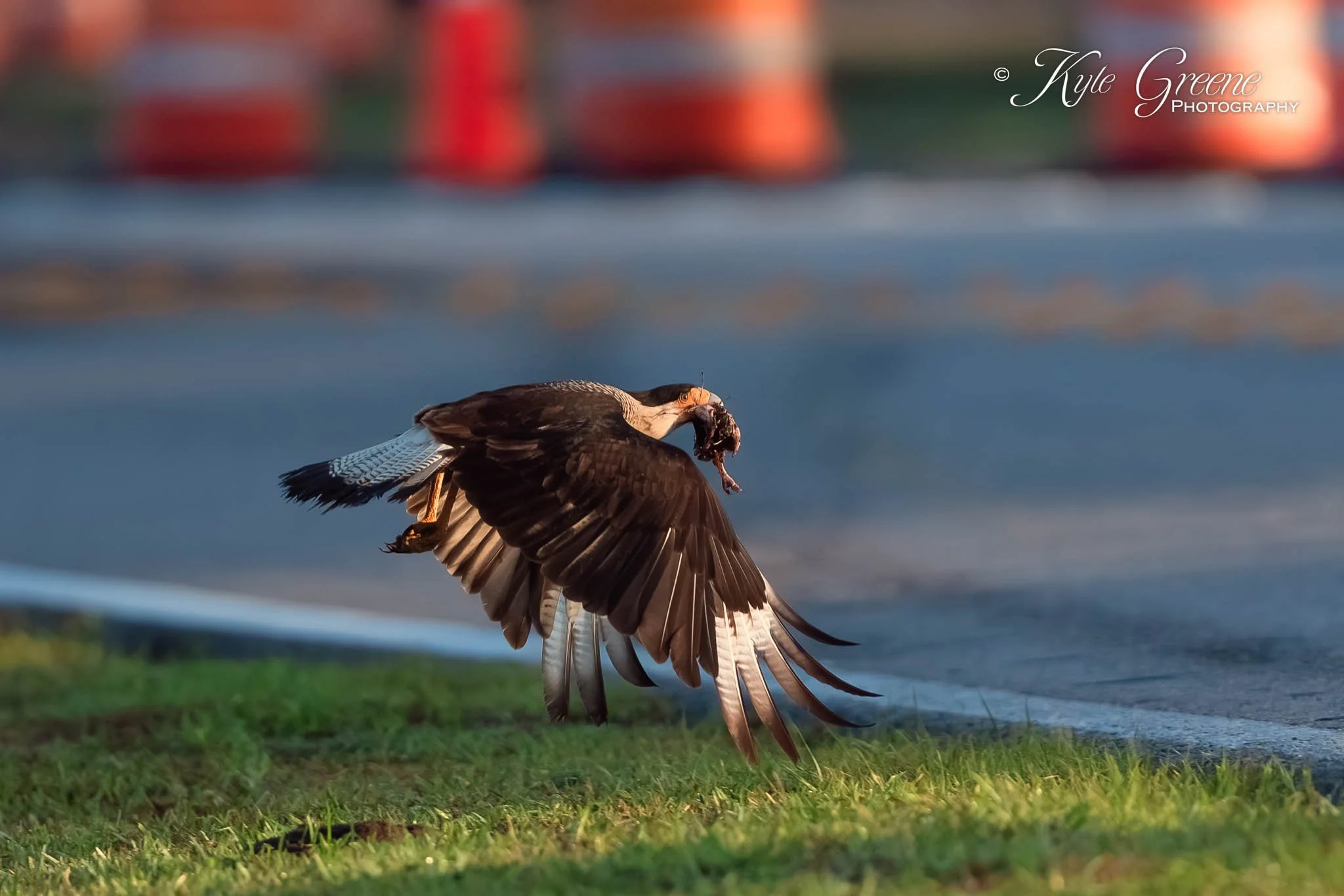 As cars drove by, one of the Cara Caras took off with a mouthful