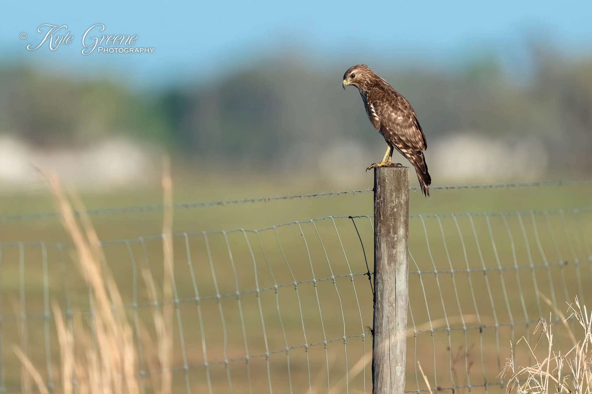 Red Shouldered Hawk waiting on a fence post for breakfast to move below it