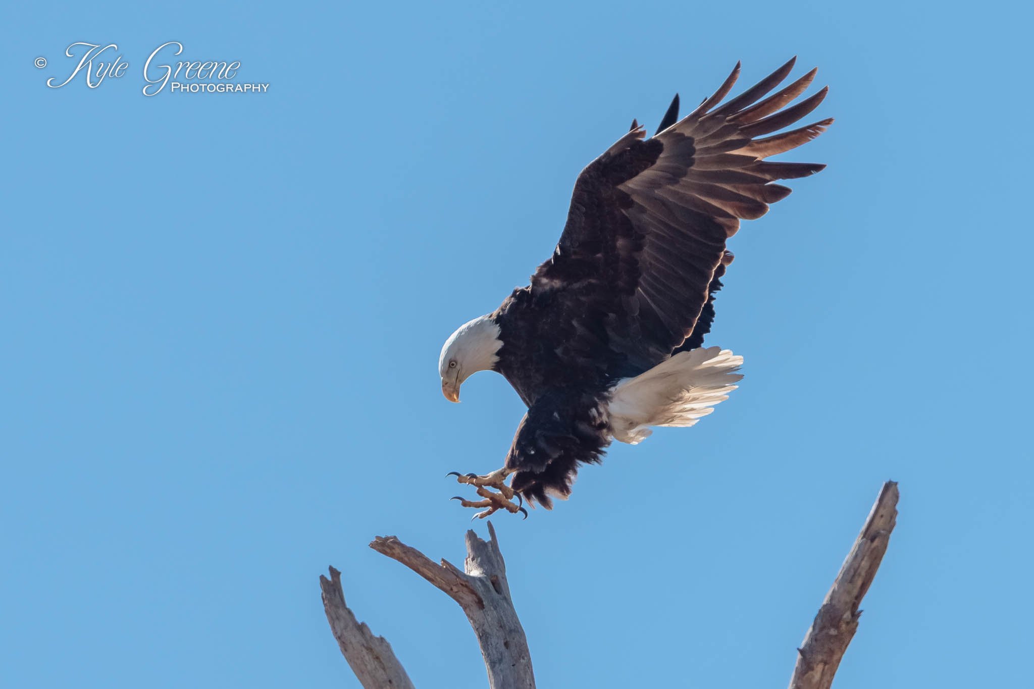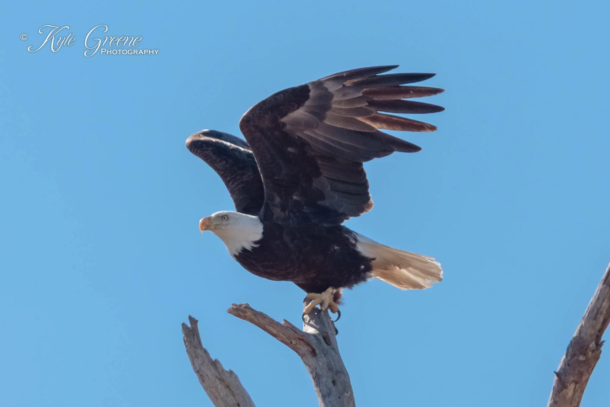 Landing on a snag opposite from the nest