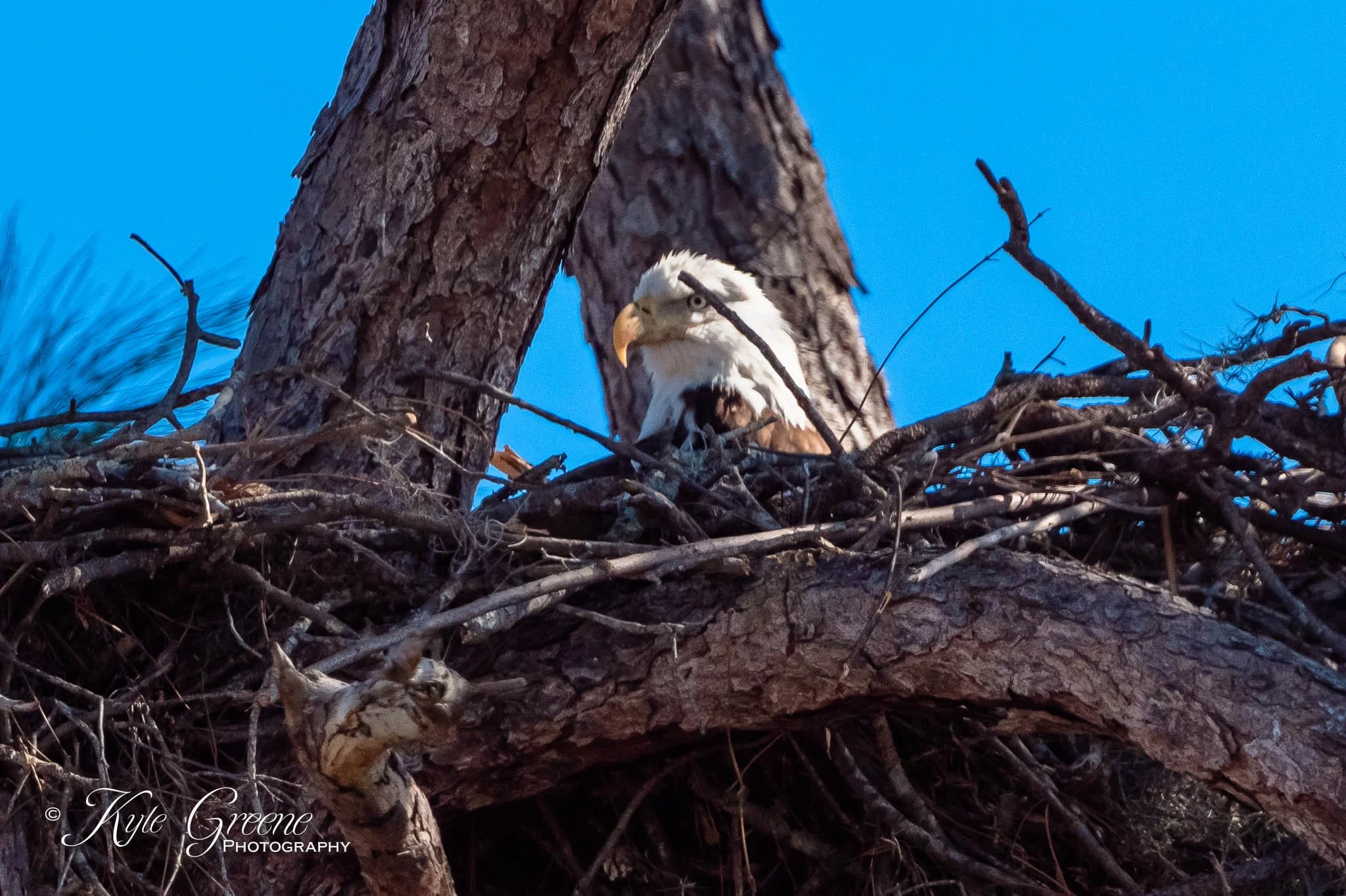 One of the adult Bald Eagles sitting in the nest