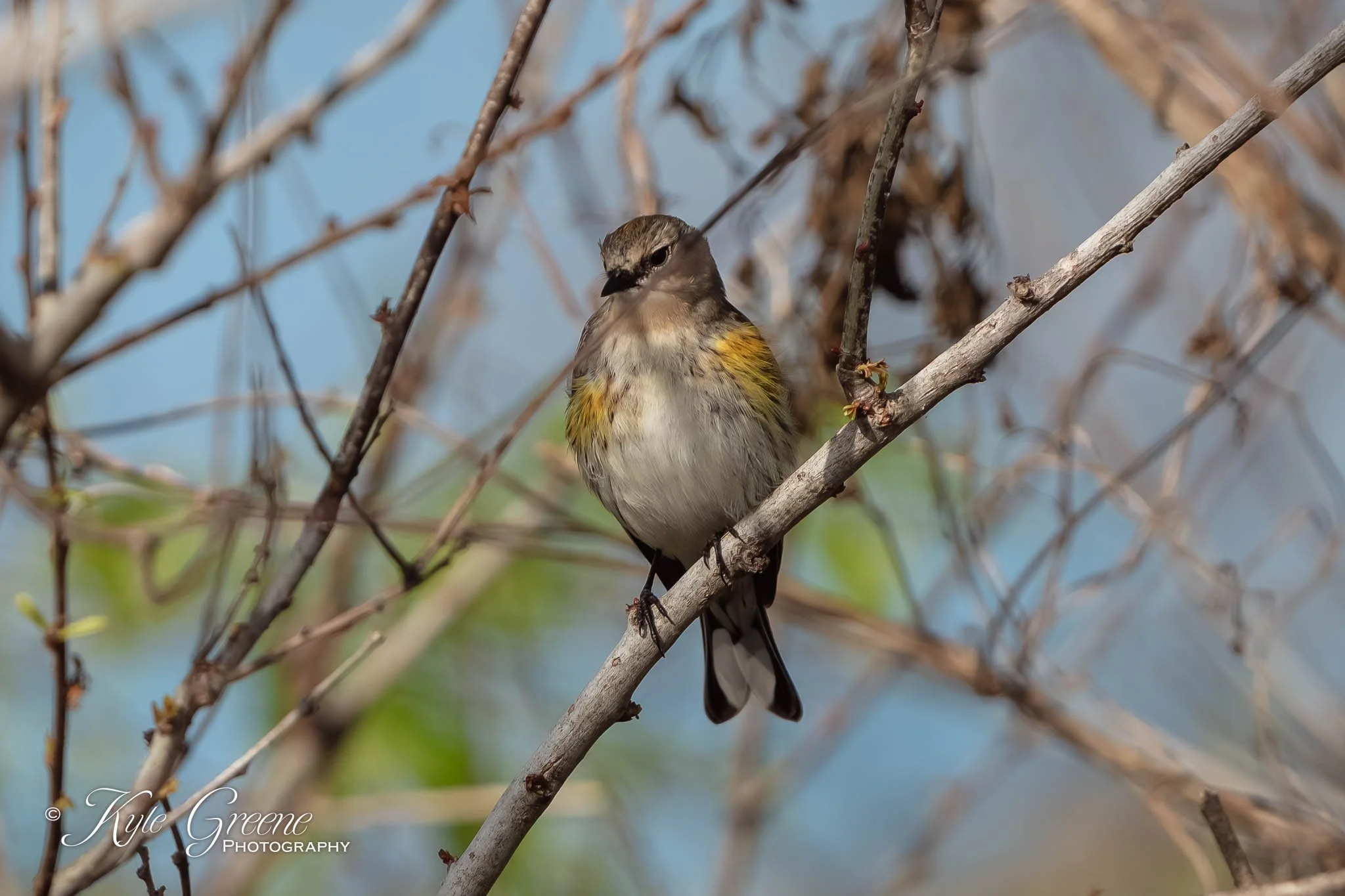 Yellow Rumped Warbler in a rare moment that it was out in the open