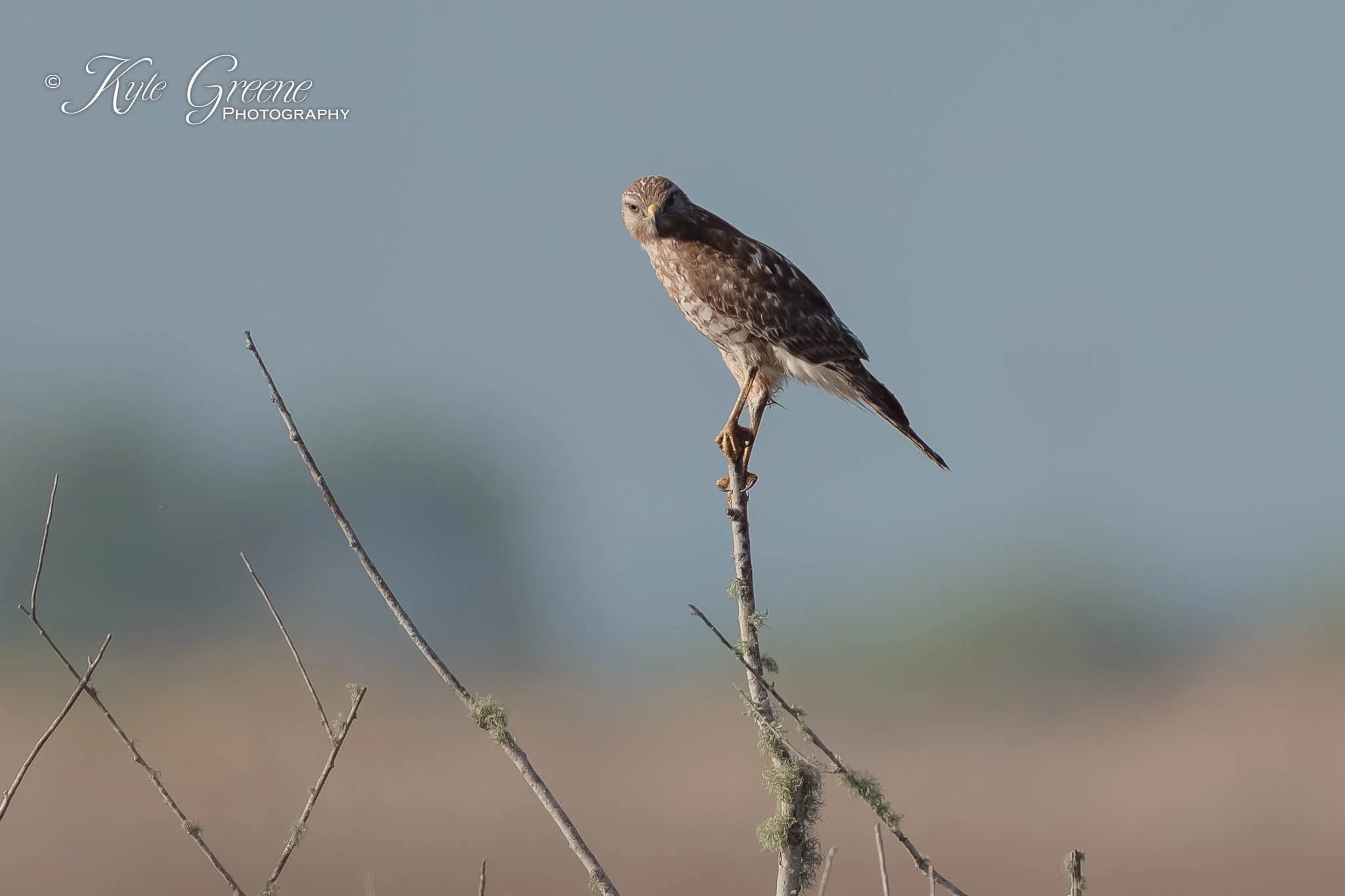 Red Shouldered Hawk watching over the marshy area on the drive